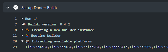 run: echo ${{ steps.buildx.outputs.platforms }}
